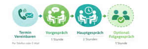 Wir können dann ein kurzes Vorgespräch führen und direkt einen Termin vereinbaren.